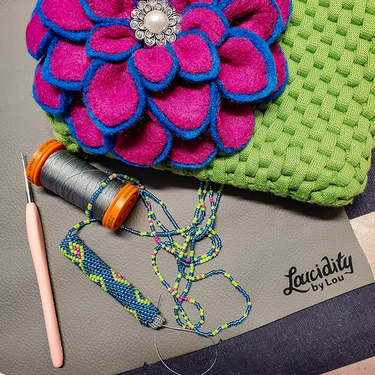 These purses, bags, and clutches are 100% handmade and one-of-a-kind, so you can be sure that no one else will have the same one as you. Each one is like a work of art, with versatile and removable bead crochet and felt embellishments that make them the perfect accessory for any outfit or style.
