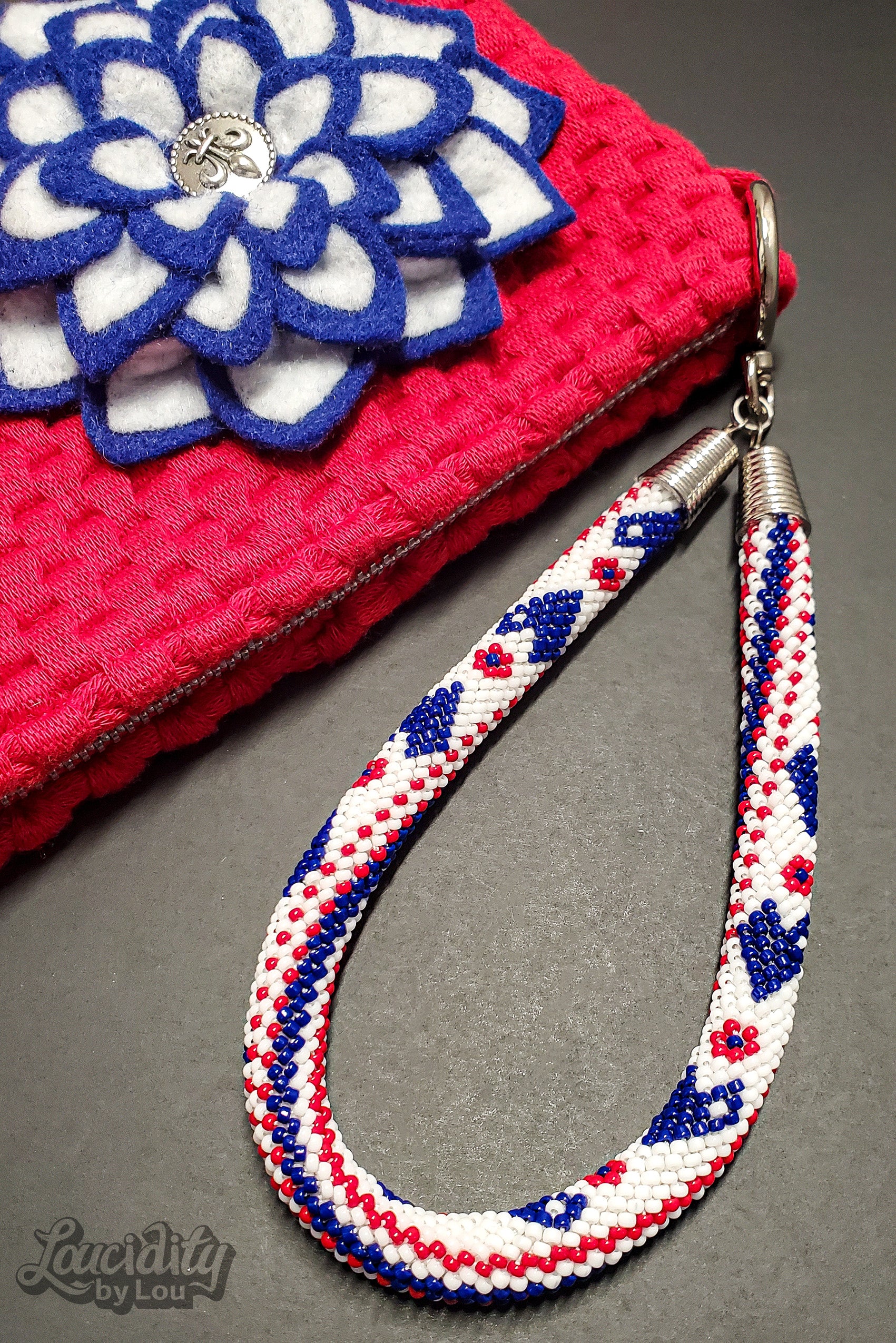 100% handmade and one of a kind crochet Patriotic red, white, and blue color theme
